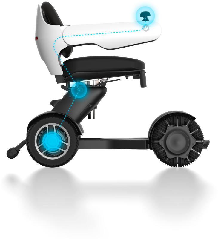 双250W永磁同步电机 ,爬坡⻆度≤10°,通电松闸,断电抱闸,并采用专属防后翻轮,即使再陡的坡也不会产生后翻